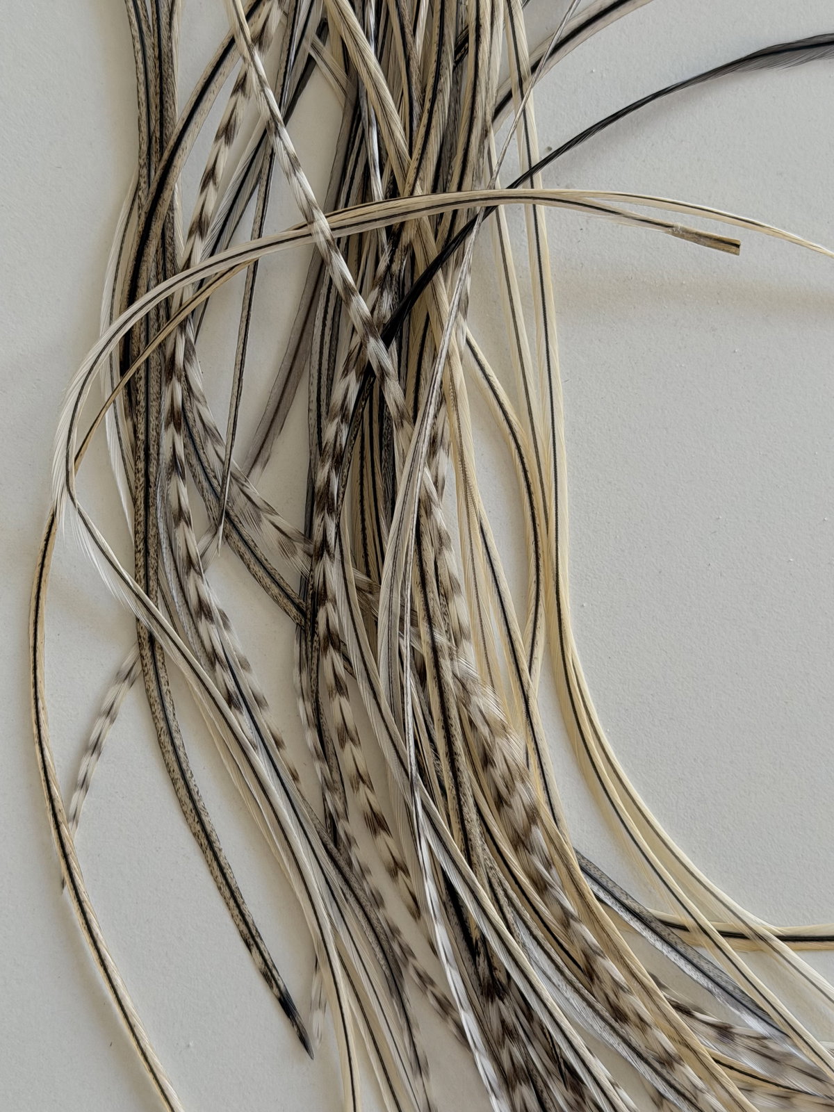 ❀ no requieren cuidado especial, recomiendo peinarse suavemente en las zonas donde esten las plumitas y evitar pasarle la planchita o buclera a las mismas